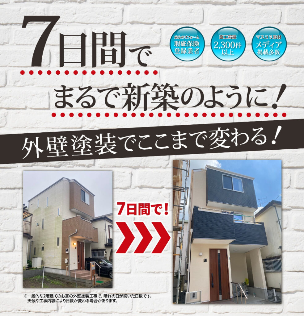 7日間でまるで新築のように!外壁塗装でここまで変わる!