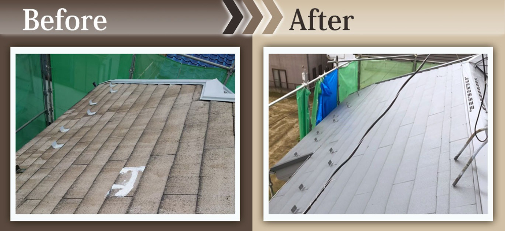 長年、雨風にさらされコケやカビが生えていた屋根が新築のような、美しい屋根に!