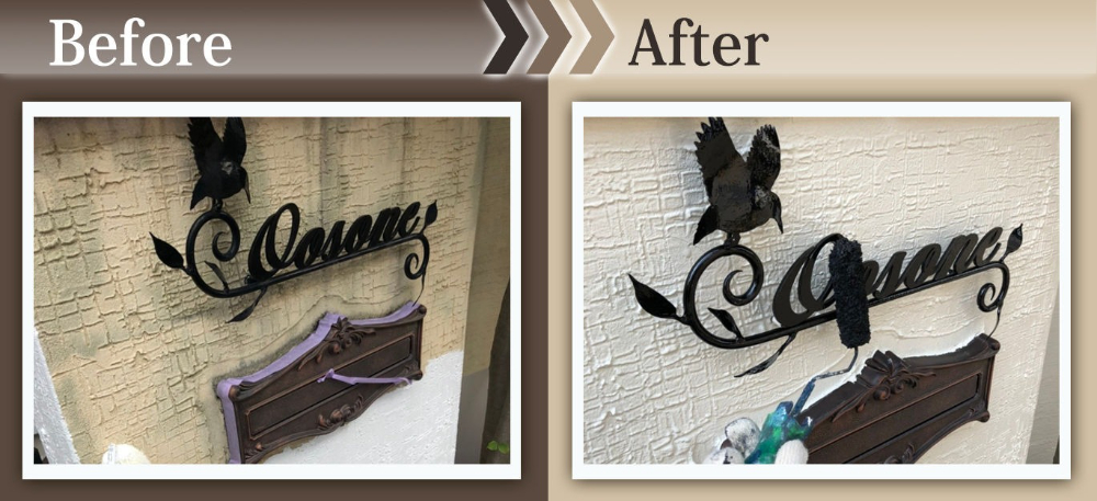 色褪せた玄関の塀や壁も・・・光沢のある、輝く壁に!